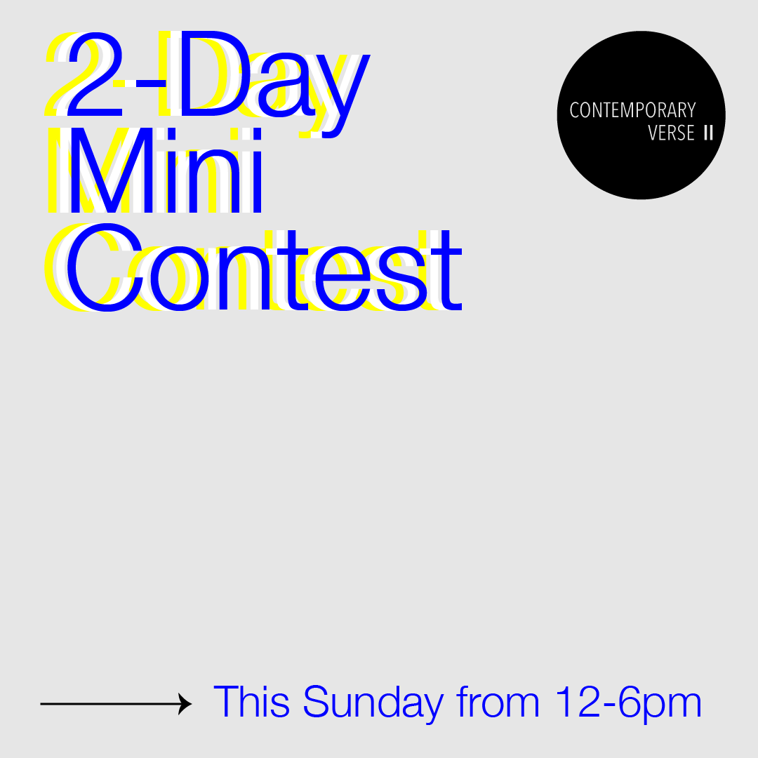 – Poems can be DMed to us on social media or emailed to contests@contemporaryverse2.ca – just get them in on time!