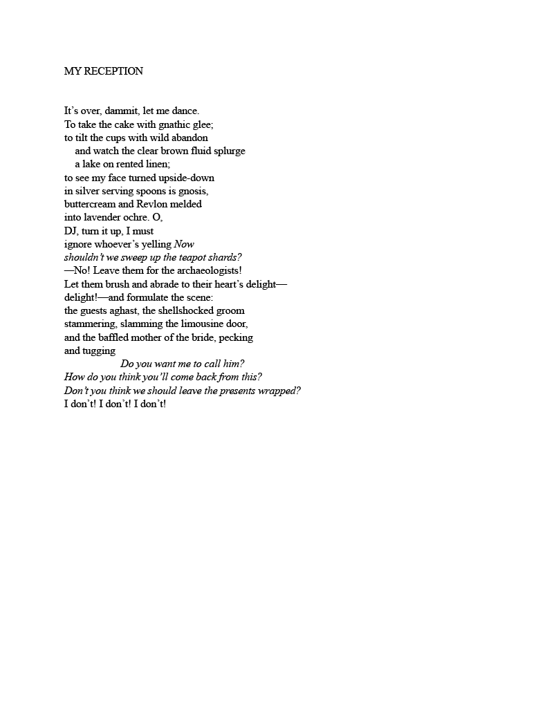 by Patrick O'Reilly MY RECEPTION This poem won the third 2026 Mini Contest! Published online April 08, 2026